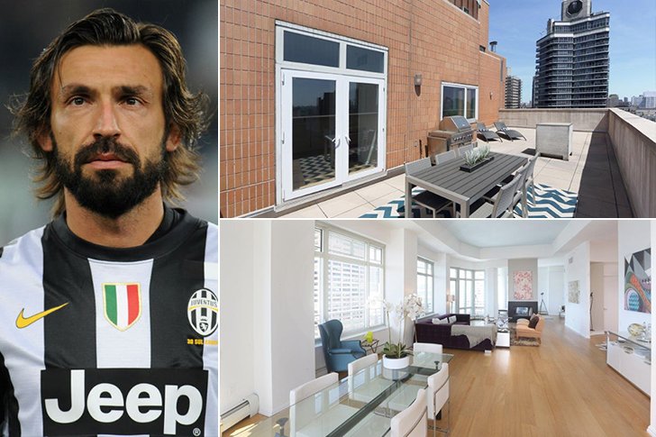 Andrea Pirlo é conhecido por ser um ex-membro da seleção italiana e fez parte do time que conquistou o título da Copa do Mundo da FIFA em 2006. Pirlo também se tornou membro de clubes de futebol como Milan, Juventus e New York City. Durante o período que ele passava muito tempo em Nova York, Pirlo na verdade alugava uma propriedade no estado que custava quase US$ 30 mil para alugar mensalmente. O apartamento de três quartos estava localizado em um prédio de luxo e apresentava tetos altos, um grande terraço e uma vista deslumbrante do horizonte de Nova York. Nunca foi relatado se Pirlo se mudou ou não.