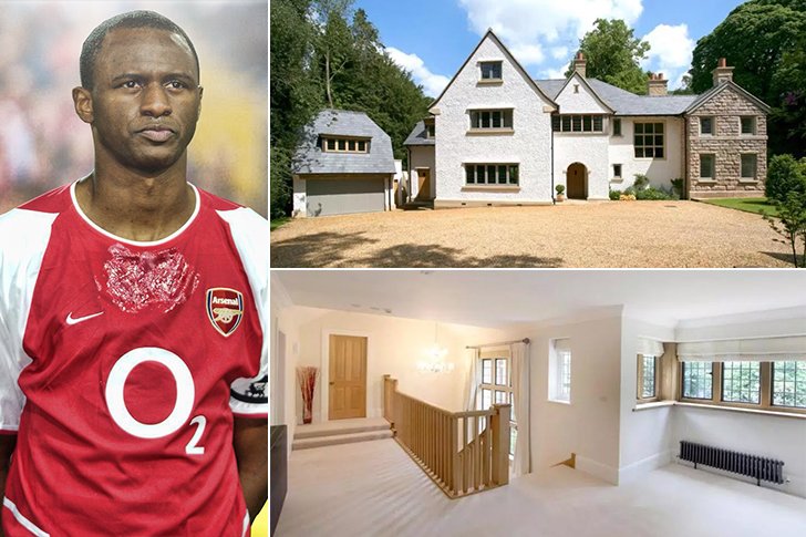 Patrick Vieira é mais lembrado por seu tempo com a seleção francesa e clubes de futebol como Arsenal, Manchester City e Internazionale. Depois de se aposentar, ele seguiu como técnico e treinou o clube de futebol de Nova York . Em 2018, Vieira começou a treinar o clube de futebol de Nice . Uma parte do patrimônio líquido da Vieira já foi investido em uma luxuosa mansão em Cheshire, que tinha um total de sete quartos. A mansão oferece comodidades como uma adega, sauna e academia. A mansão foi colocada a venda em 2017, mas foi vendida em 2018 por cerca de US$ 2,8 milhões.