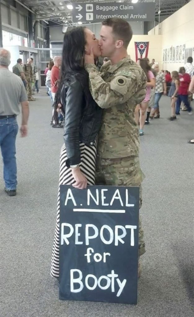 Das Wiedersehen nach einer langen Trennung ist immer ein emotionaler Moment, besonders, wenn es sich um Paare handelt, die eine Fernbeziehung führen oder wenn ein Soldat aus einem Einsatz zurückkehrt. Am Flughafen werden solche Momente oft zu herzerwärmenden Szenen, die bei allen Anwesenden Gänsehaut auslösen. Eine Frau entschied jedoch, diesen Moment mit einer Prise Humor zu würzen.
