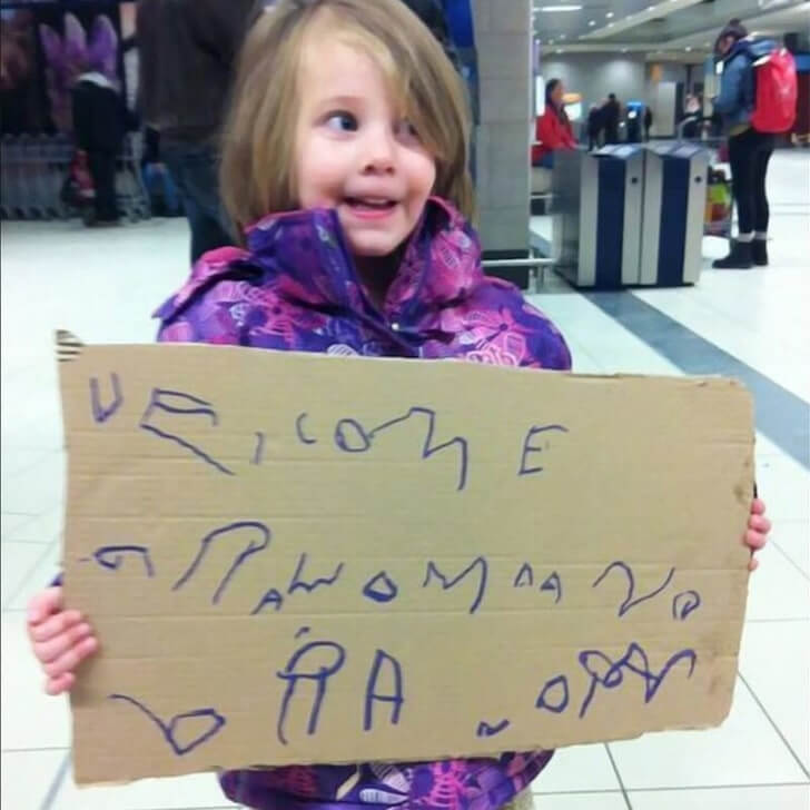 Für Kinder ist es ein besonderes Ereignis, geliebte Menschen nach einer langen Reise wiederzusehen. Noch schöner wird es, wenn sie selbst an der Begrüßung mitwirken dürfen. Ein kleines Mädchen wollte einen eigenen Willkommensgruß schreiben und entschied sich nicht für ein buntes Bild, sondern für eine geschriebene Nachricht.