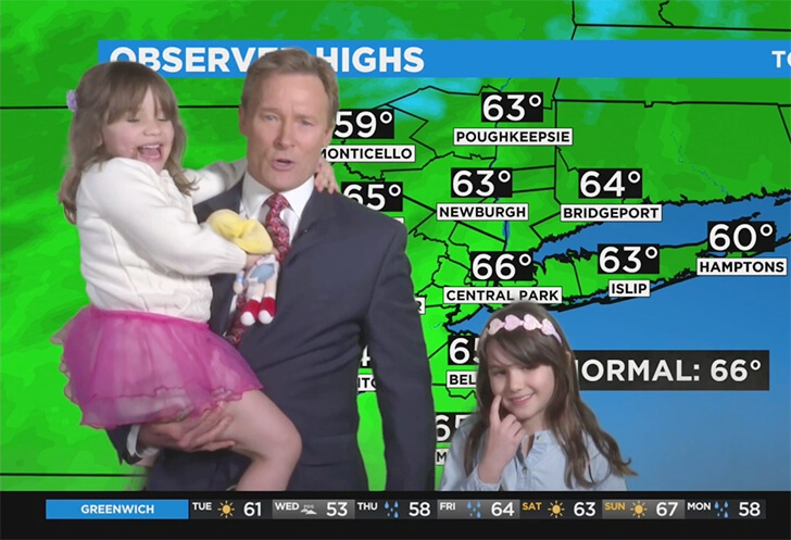 As Lonnie prepared to deliver his forecast, his two daughters, Lily and Savannah, found the opportunity to watch their father in action irresistible. Unbeknownst to him, they made their way into the frame, becoming unexpected co-stars in his weather report. Despite the inevitable interruptions and distractions, he maintained his composure, offering a lighthearted remark that things were spiraling out of control.