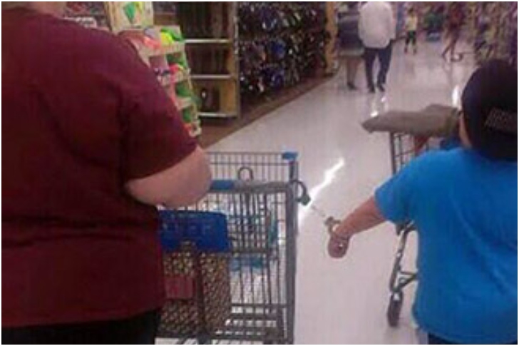 Child criminal on the loose? Not sure why the child is handcuffed to the grocery cart, but we’re guessing it’s just another case of uncontrollable child syndrome. However, isn’t this a little too far? Nonetheless, we don’t think it’s wise to be bringing children while grocery shopping, ever. Numerous accidents have happened, stuff toppling over, glass goods breaking, you get the idea.