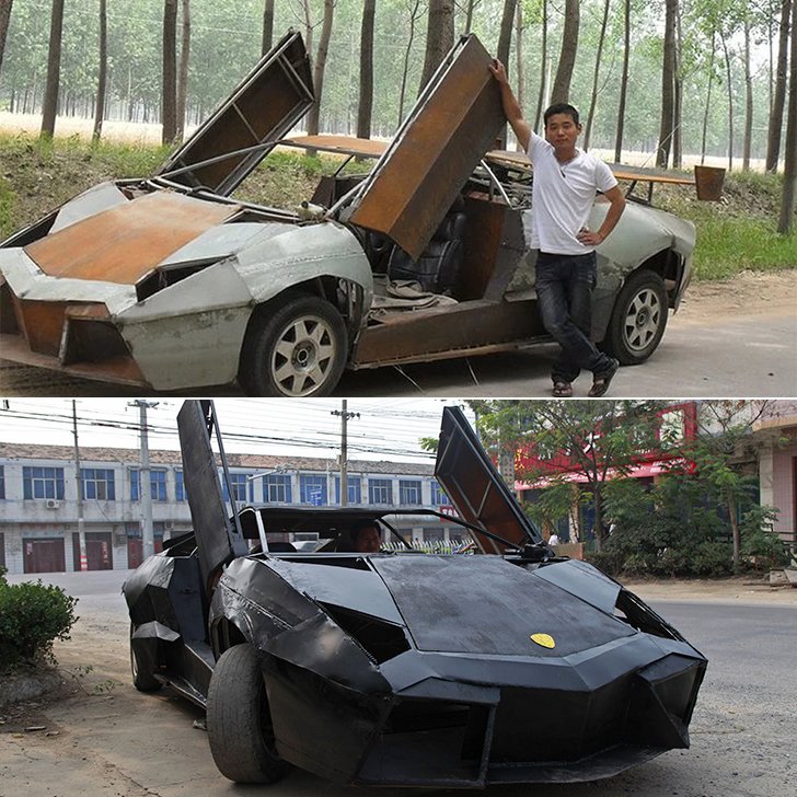A lot of people fantasize about having a supercar of their own but it forever inhabits the realm of fantasy. One man from China, the son of an average farmer, decided he would actualize his fantasy in his own way. His dream was a 2007 model Lamborghini Reventon costing $1.3 million. Just twenty-one units of this model were manufactured in the world. Prices for say, a 2019 Lamborghini Huracán only start at approximately $203K. But using the parts of an old Volkswagen Santana and a Nissan, Wang Jian made himself a replica for $7.6K. The replica lacks items like headlights and windshields, but it works fully and has a maximum speed of 160 mph. Do you think it has an alarm system?