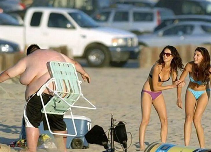 Some beach chairs are built for comfort, but this one has staged an act of rebellion. Wedged in a battle between the chair and its user, the scene has turned into an unintentional slapstick moment, leaving everyone around torn between helping and holding back laughter. The onlookers in bikinis are visibly amused; their beach day entertainment upgraded to front-row comedy.