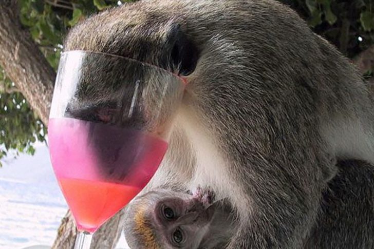 The multitasking bar just got raised, and it involves wine and motherhood—monkey style. As the mama monkey indulges in her tropical beverage, the little one clings to her like an expert in both survival and drama. The whole scene is hilariously relatable as if she’s saying, “I deserve this moment” while juggling her responsibilities.