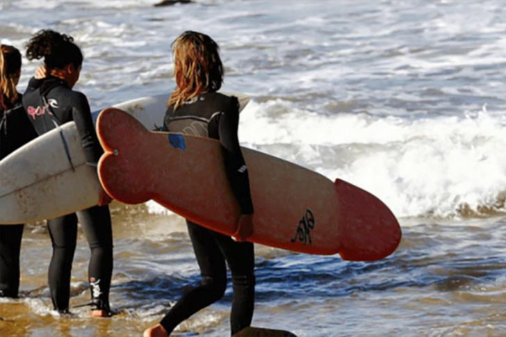 Somewhere between daring art and the ultimate inside joke, this board ensures no one forgets who owns the beach today. While her friends prepare for a typical surf day, she’s taking a ride straight into comedic legend territory. The waves might not even be ready for this kind of energy.