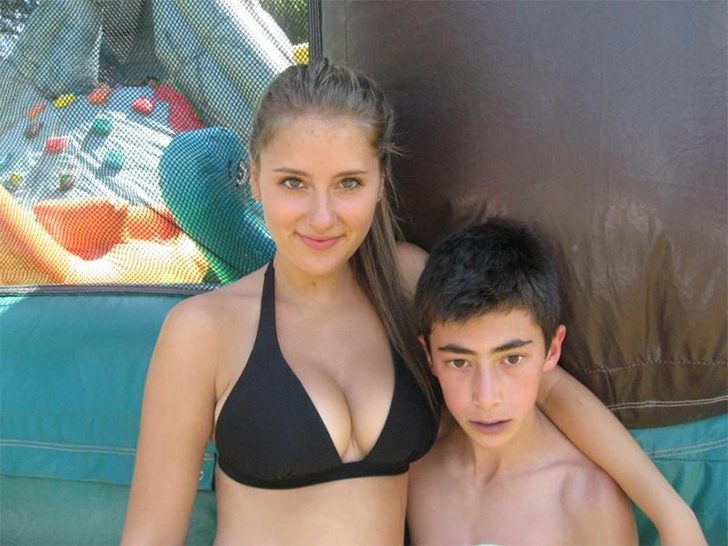 It’s a classic mix of focus and impatience, with her effortlessly confident energy meeting his “let’s get this over with” attitude. Whether it’s the bright inflatable in the background or the awkward body language, this photo is packed with that unplanned humor only candid moments can deliver.