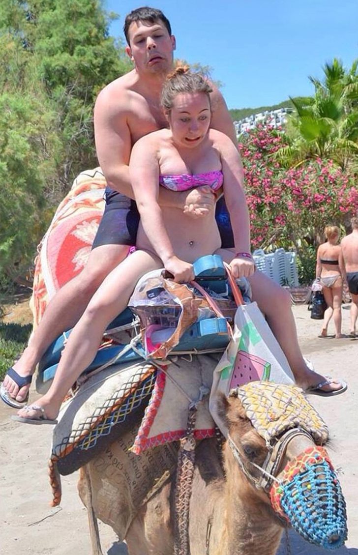 Meanwhile, the camel just seems to be minding its business, probably judging their balance skills.