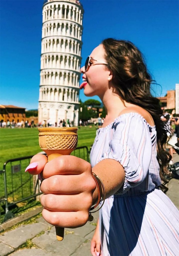 This just gave a new meaning to the term “cone of perfection.” Instead of the usual hand-held poses with the Leaning Tower of Pisa, this tourist decided to turn Italy’s iconic landmark into the ultimate gelato experience—without the calories. It’s all about the angle and the prop, and she nailed both with the precision of someone who practiced this at least five times before the shutter clicked.