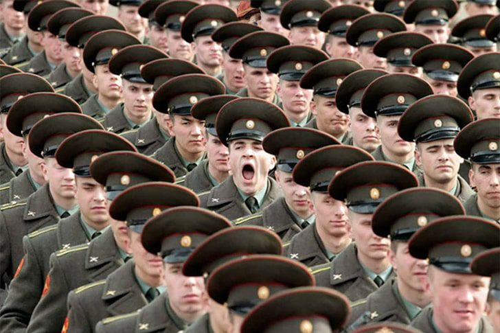 Amid the sea of perfectly synchronized faces, one soldier decided it was the perfect time for a dramatic mid-march yawn. Whether it was a long night or just the monotony of precision marching, this candid moment couldn’t have been better timed. His open-mouthed rebellion adds a touch of humor to an otherwise impeccable lineup.
