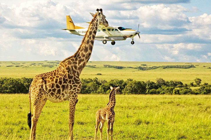 Meanwhile, the little giraffe on the side seems to be observing its parent’s new job with complete admiration, probably thinking, “That’s the coolest thing I’ve seen all day.” The backdrop of the plains, with the plane and the giraffes in such a synchronized moment, is a reminder that sometimes nature and technology collide in the quirkiest ways.