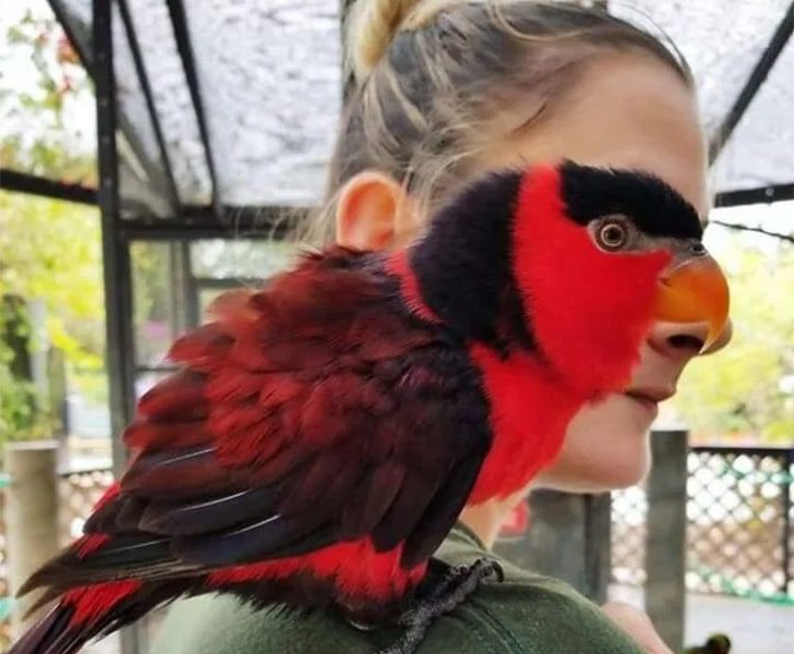 Our feathered friend has clearly mastered the art of stealing the spotlight—or, in this case, her face. The black-capped lory perches like royalty, creating an illusion that it’s sprouted a human body. It’s hard to decide what’s more impressive: the bird’s confidence or the perfectly synchronized timing of the shot.
