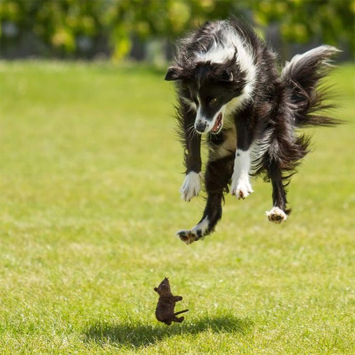 It’s hard to tell who’s more shocked here—the dog or the toy, which seemed like it was also frozen in shock. The sheer effort to evade what’s clearly a harmless object makes this photo the perfect mix of action and hilarity. One thing’s for sure: this pup could be a star in its own animated adventure.