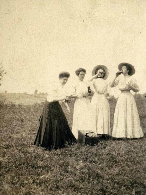Who knew daytime drinking was so popular with the ladies of the days of yore? This joyful photo shows some young women out having some fun in the sun, and enjoying a refreshing tipple while out and about with the girls.