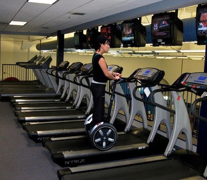 Warum sich abmühen, wenn es auch einfach geht? Diese Frau hat den inneren Schweinehund auf elegante Weise überlistet – mit einem Segway. Statt sich auf dem Laufband abzukämpfen, cruist sie entspannt durch das Gym. Ihr Motto? Warum schwitzen, wenn man auch einfach Kalorien verbrennen kann.