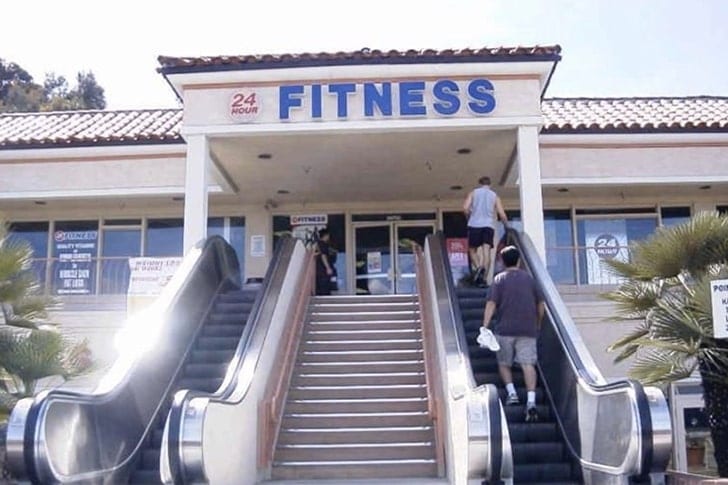 Ins Gym zu kommen, ohne ins Schwitzen zu geraten? Kein Problem, zumindest nicht für die Mitglieder dieses Fitnessstudios. Statt die Treppe zu nehmen, haben sie die Möglichkeit, entspannt auf der Rolltreppe ins Fitnessstudio zu gleiten. Warum Energie verschwenden, bevor man überhaupt mit dem Training beginnt?