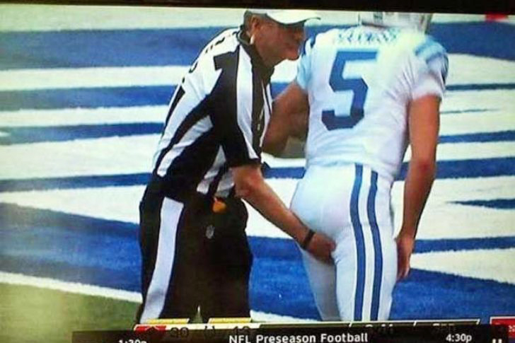 Was genau hier auf dem Spielfeld passiert ist, bleibt wohl ein Rätsel, aber dieser Griff sorgte definitiv für Erheiterung. Der Schiedsrichter, der normalerweise Garant für Ordnung und Fairness sein sollte, greift hier einem Spieler direkt in den Schritt, was nicht zu seinen Aufgaben gehören dürfte. Ob er die Kleidung und die Schutzelemente des Spielers überprüfen wollte oder ob es sich um einen unglücklichen Moment handelt, ist unklar.