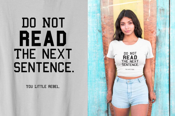 This T-shirt cleverly employs reverse psychology, a tactic where telling someone not to do something makes them want to do it even more. This playful trick taps into human nature’s rebellious side, making it hard to resist reading on.