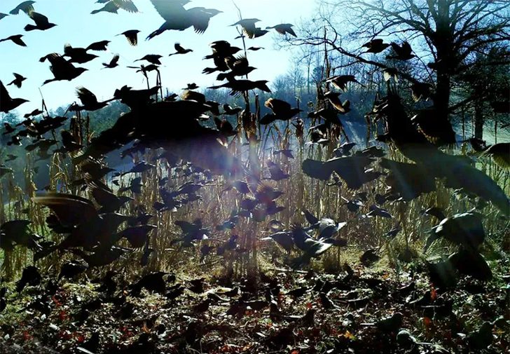 画面に映ったのは、太陽すら隠してしまいそうなカラスの群れ。正式には「マーダー・オブ・クロウズ(Murder of Crows)」と呼ばれるほど、不吉な雰囲気をまとっています。縄張り意識が強いカラスが人間に気づいたら…想像しただけで背筋が寒くなります。
