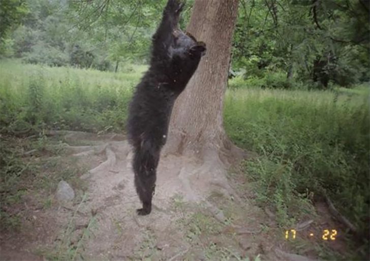 まるでヨガのポーズのように、立ち上がってストレッチするクロクマの姿。クマが普段は四足歩行であることを忘れてしまいそうな、人間味のある貴重なショットです。