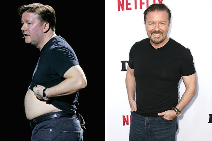 Gervais estava sonhando em ser uma estrela pop, mas o fracasso de sua carreira de cantor não o levou a desistir – mas a rir disso e se tornar um comediante, até que ele se tornou um nome familiar nos estados. Depois de ser convidado para sediar seu segundo Globo de Ouro em 2011, ele decidiu que estava cansado de ser um “gordo, preguiçoso e fora de forma”, então ele embarcou em um regime de perda de peso, perdeu cerca de 18 quilos e ainda está trabalhando para manter o peso.