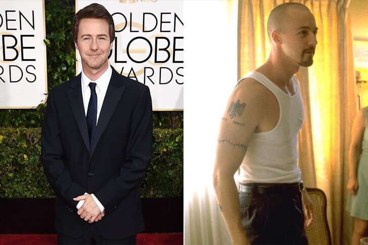 Em um dos filmes mais bem sucedidos dos anos 80 Edward Norton retratou o personagem notório de Derek em: “História Americana X”, por meio do qual ele teve que ganhar peso muscular e desenvolver um abdômen, e o mais surpreendente é que ele conseguiu isso em apenas três meses. Treinamento físico e desenhos de tatuagem eram parte dos preparativos. Há rumores de que chamou a atenção do Mister Olimpia e que viria a ser Governador da California Arnold Schwarzenegger, que estava interessado em saber quais esteróides estavem sendo usados. Acontece que o ator não demorou para se transformar em Derek