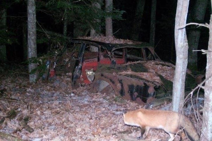 In den Tiefen eines Waldes hat eine Wildkamera eine skurrile Szene eingefangen, die selbst den erfahrensten Naturfotografen staunen lässt. Mitten im Grünen steht ein verlassenes Autowrack, das von der Natur zurückerobert wurde. Doch statt nur als rostiger Blumentopf zu dienen, hat dieses Habitat neue Bewohner angezogen.
