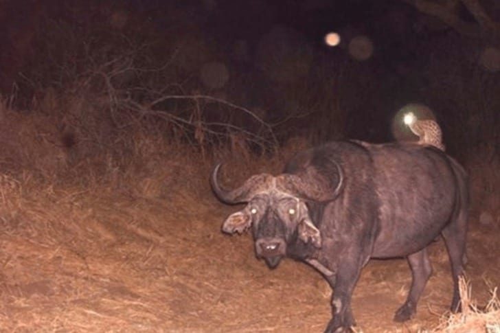 Während der Büffel gemächlich durch die Gegend trabt, sitzt die Katze da oben wie eine Königin auf ihrem lebenden Thron. Man kann förmlich sehen, wie sie die anderen Tiere mit einem überlegenen Blick mustert, nach dem Motto: “Seht her, ich habe das Fortbewegungsmittel der Zukunft entdeckt!”